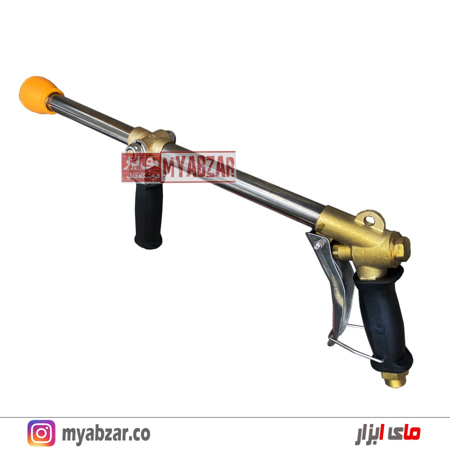 لانس تفنگی یا مسلسلی برای سمپاشی درخت هایی مانند گردو و نخل که ارتفاع بالایی دارند مناسب است. البته شما می توانید از این لانس بصورت چند گانه نیز استفاده کنید. بدین ترتیب که با کاهش فشار پمپ شما می توانید محصولات زراعی و باغی در ارتفاع پایین را نیز سمپاشی نمایید. شیر تنظیم خروجی این نازل در انتهای آن قرار گرفته است. با فشار دادن این شیر، مسیر آب باز شده و سمپاشی شروع می شود. هر چقدر شیر را به داخل فشار دهیم میزان خروجی آب بیشتر می گردد. با رها کردن دسته مسیر خروجی آب بسته می شود. اهرم تعبیه شده در وسط لانس می تواند نوع پاشش را کنترل نماید.