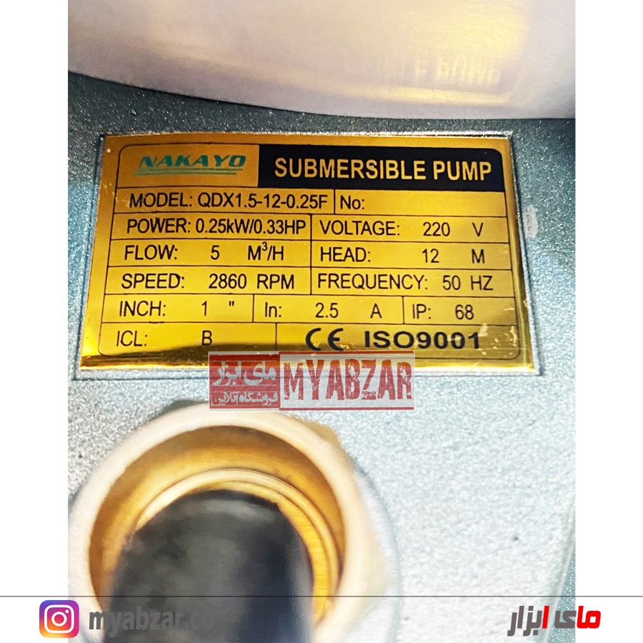 کفکش 12 متری 1 اینچ ناکایو مدل QDX1.5-12-0.25F مناسب چاه های اب صاف و متراژ 2 الی 10 متر میباشد.