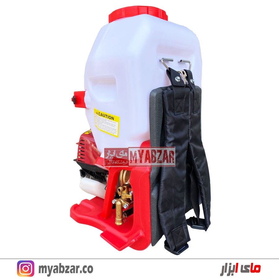 ظرفیت مخزن این سمپاش 25 لیتر می باشد. اما نیازی به پر کردن کامل مخزن نیست. هنگام پر کردن مخزن دقت نمایید مایع از طریق صافی قرار داده شده در روی درب مخزن عبور داده شود. این امر از ریخته شدن شاخ و برگ و … به مخزن و آسیب به پمپ دستگاه جلوگیری می کند.