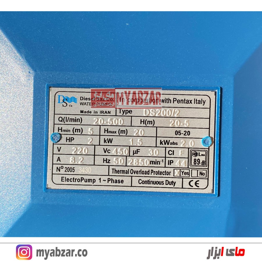 پمپ 2 اسب 2 اینچ دیزل ساز مدل DS200/2
