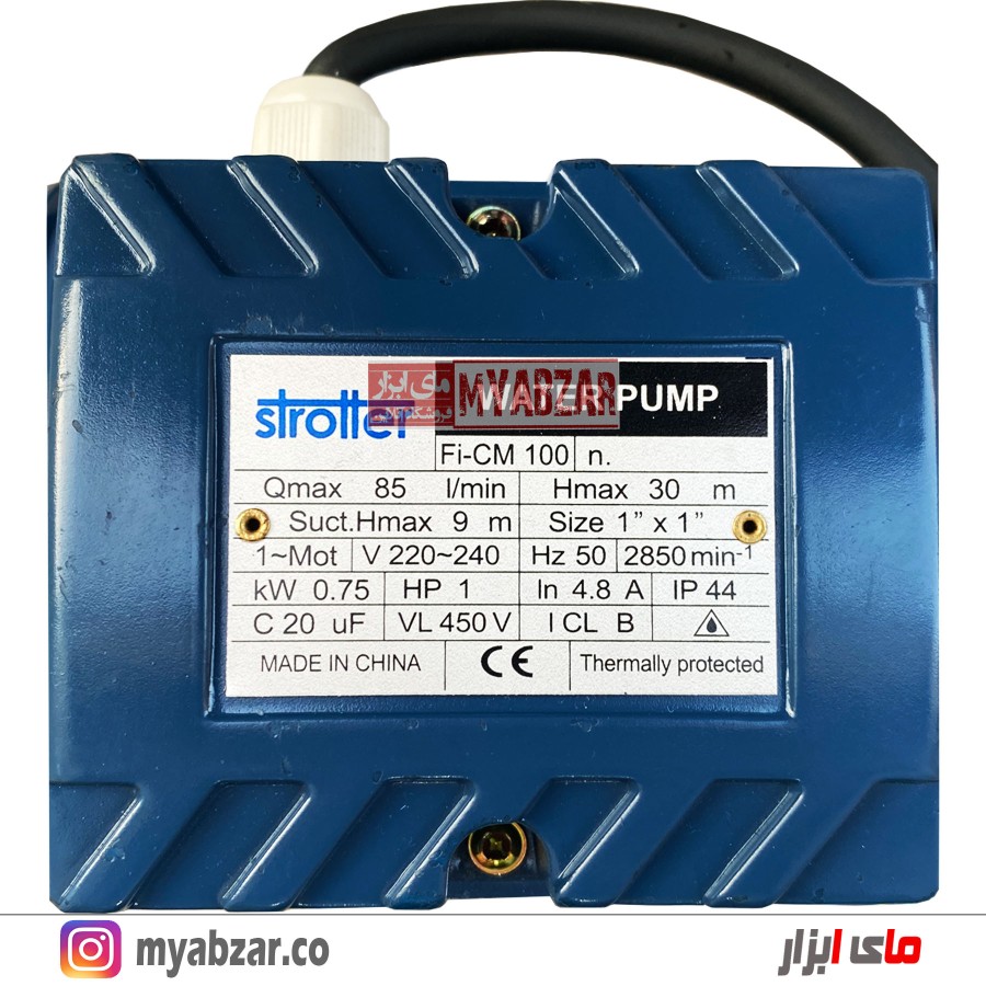 پمپ یک اسب استرولر - از ویژگی های این پمپ میتوان به میزان انتقال اب تا ارتفاع 30 متر و حداکثر آبدهی 85 لیتر در دقیقه اشاره کرد.مناسب برای ساختمان های 2 الی 3 طبقه.ساخت چین