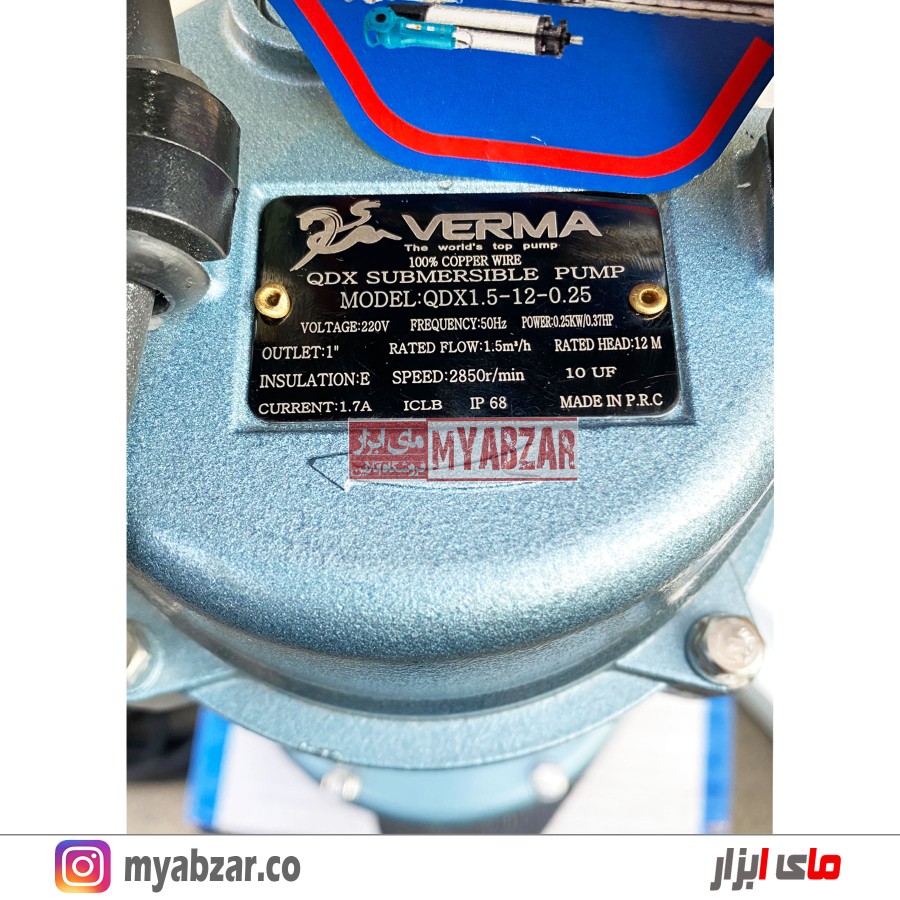 کفکش 12 متری 1 اینچ ورما مدل QDX1.5-12-0.25 مناسب چاه های اب صاف و متراژ 2 الی 10 متر میباشد.