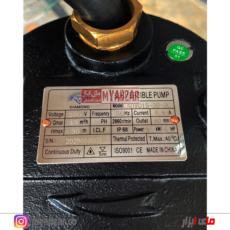 پمپ لجن کش 30 متری 2 اینچ دیاموند 3 فاز مدل 50WQ15-30-3C