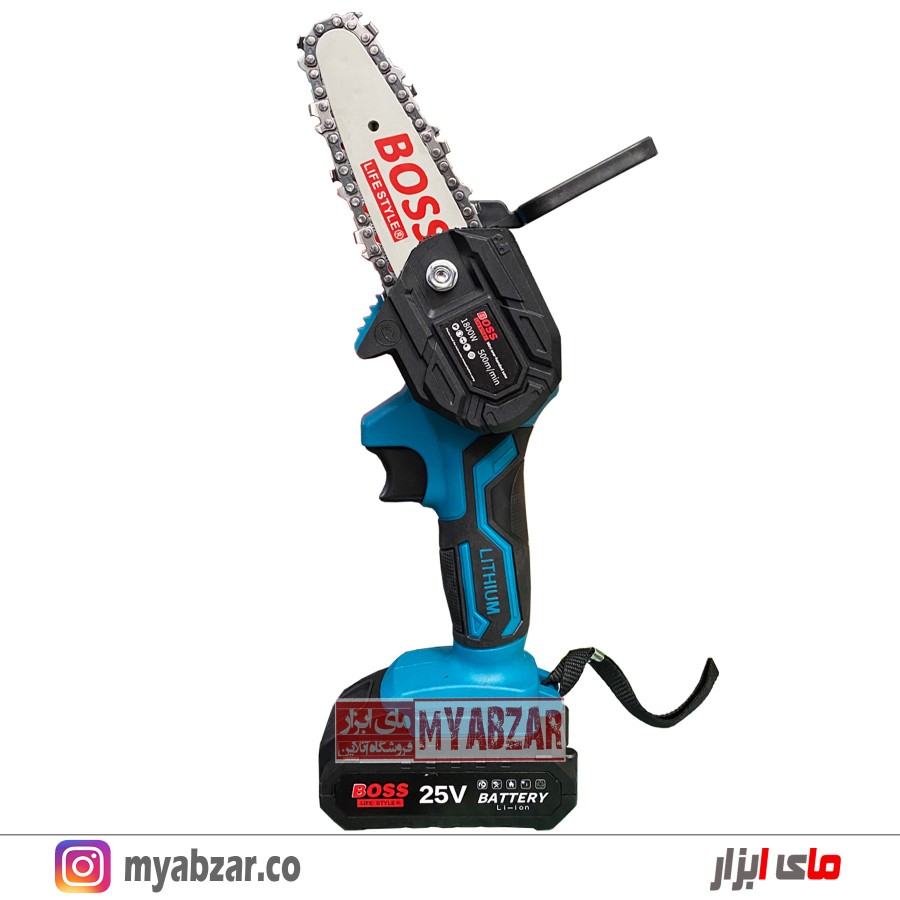 اره زنجیری شارژی باس تیغه 10 سانتی BOSS با باطری لیتیوم 25 ولت و گشتاور 30 نیوتن متر، مناسب برای برش و هرس شاخه ها میباشد.