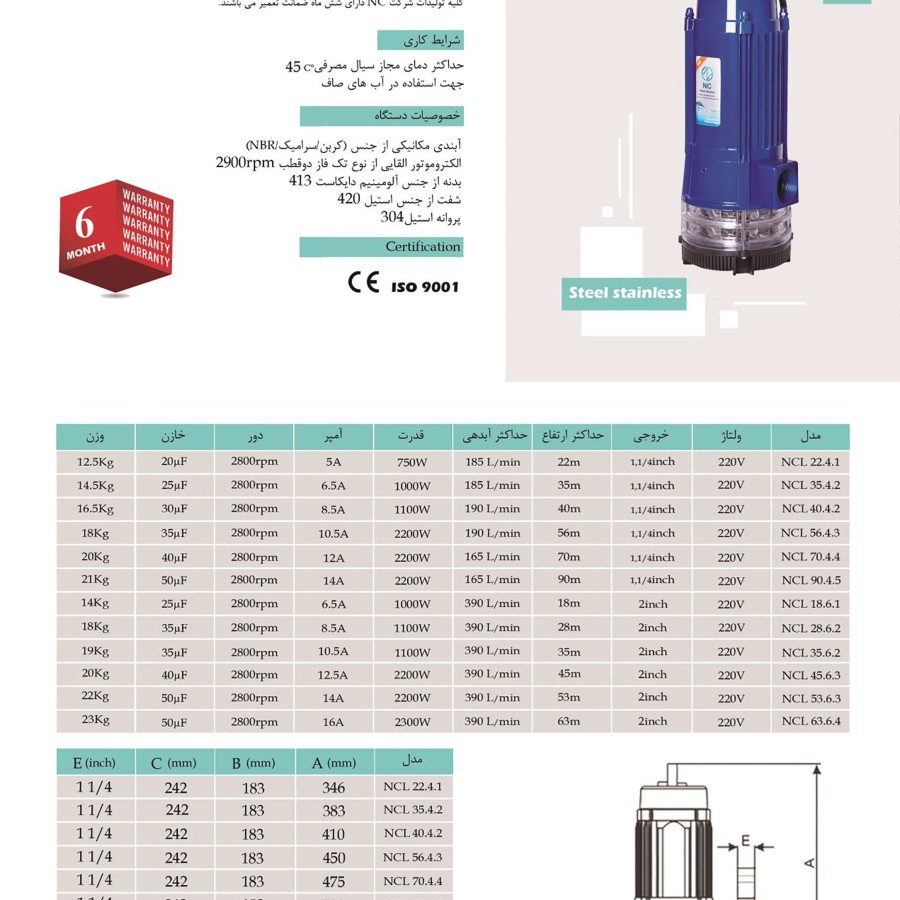 پمپ کف کش 28 متری ایران پمپ 2 اینچ مدل NCL 28.6.2
