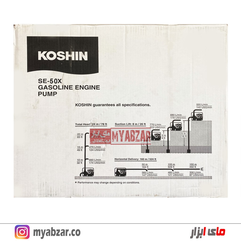 مدل SE-50X برای عملکرد از سوخت بنزین استفاده می کند و قطر دهانه ورودی و خروجی آن 2 اینچ می باشد همچنین این موتور پمپ می تواند آب را از ارتفاع 7 متر عمودی مکش کرده و تا ارتفاع مفید 27 متر عمودی یا 400 متر افقی ارسال نماید.
