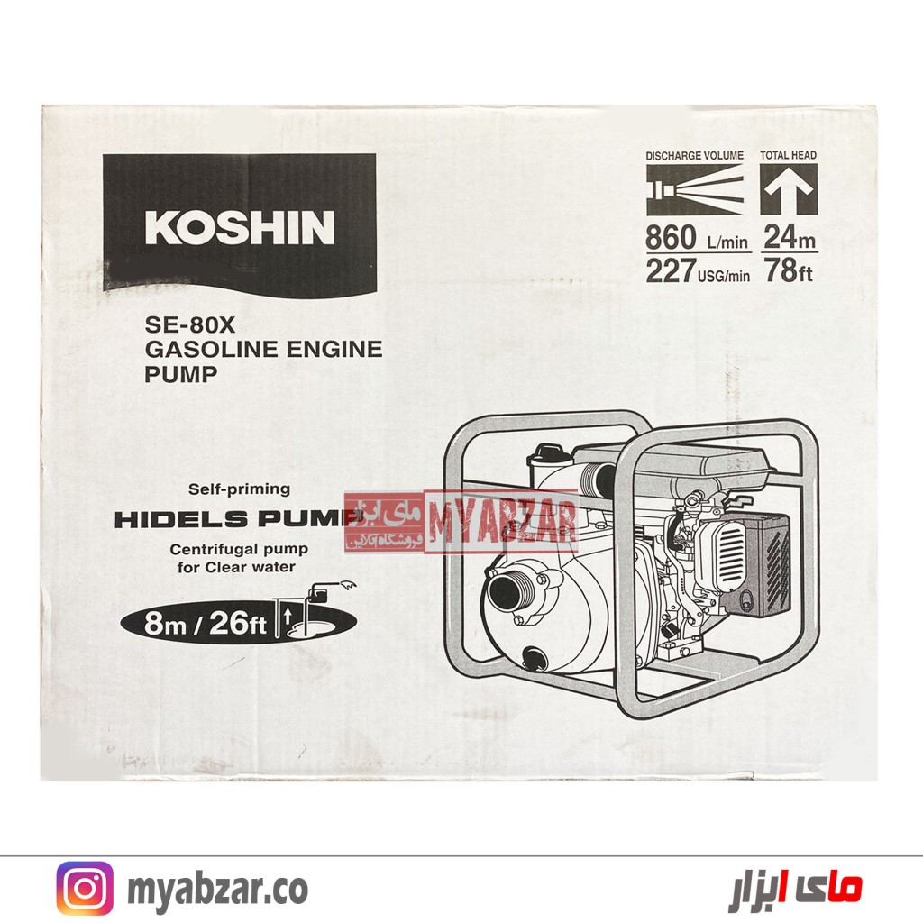 مدل SE-80X برای عملکرد از سوخت بنزین استفاده می کند و قطر دهانه ورودی و خروجی آن 3 اینچ می باشد همچنین این موتور پمپ می تواند آب را از ارتفاع 7 متر عمودی مکش کرده و تا ارتفاع مفید 24 متر عمودی یا 380 متر افقی ارسال نماید.