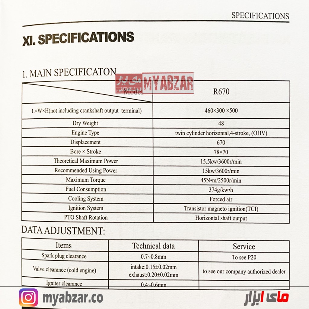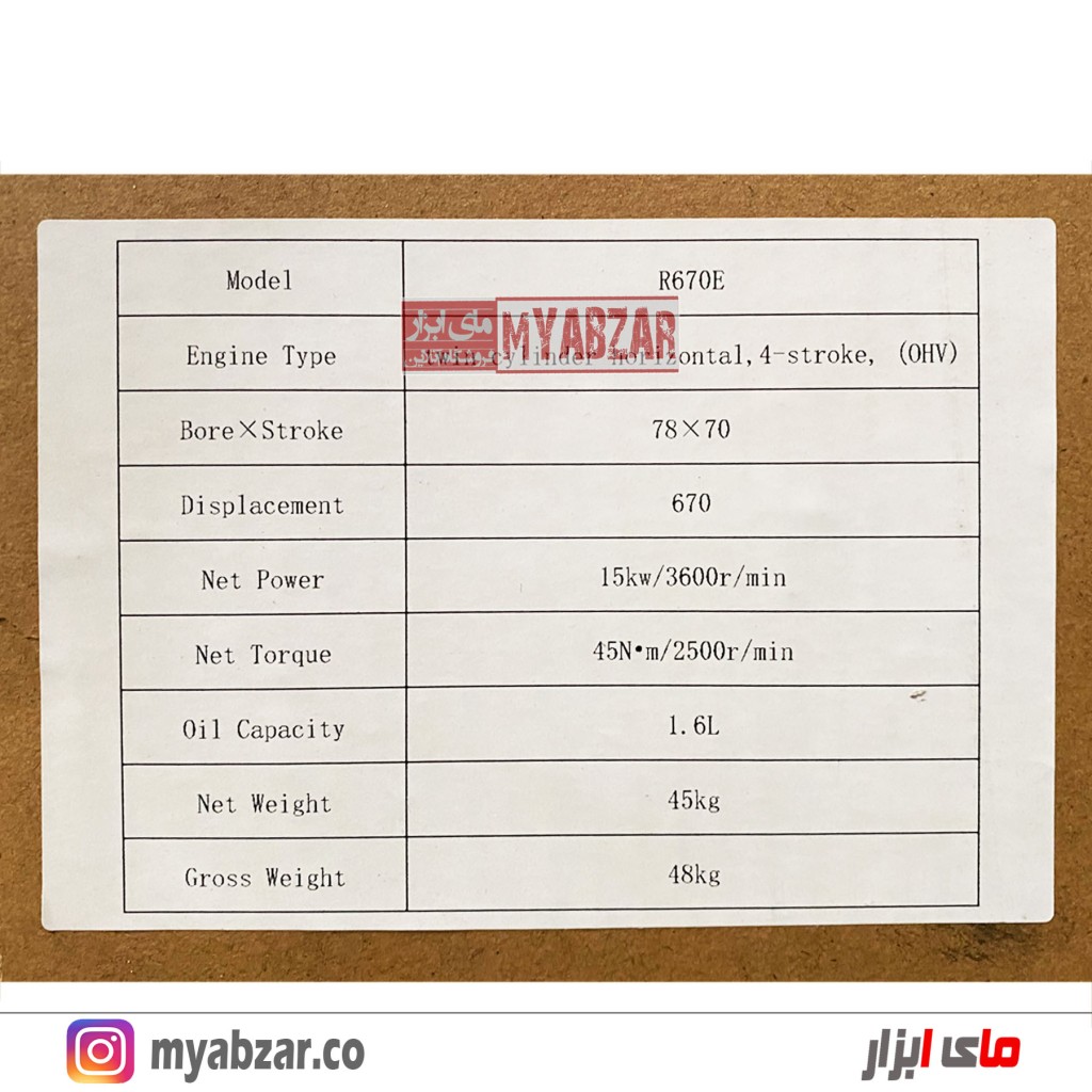 مدل محصول | موتور دو سیلندر 22 اسب راتو RATO R670 |