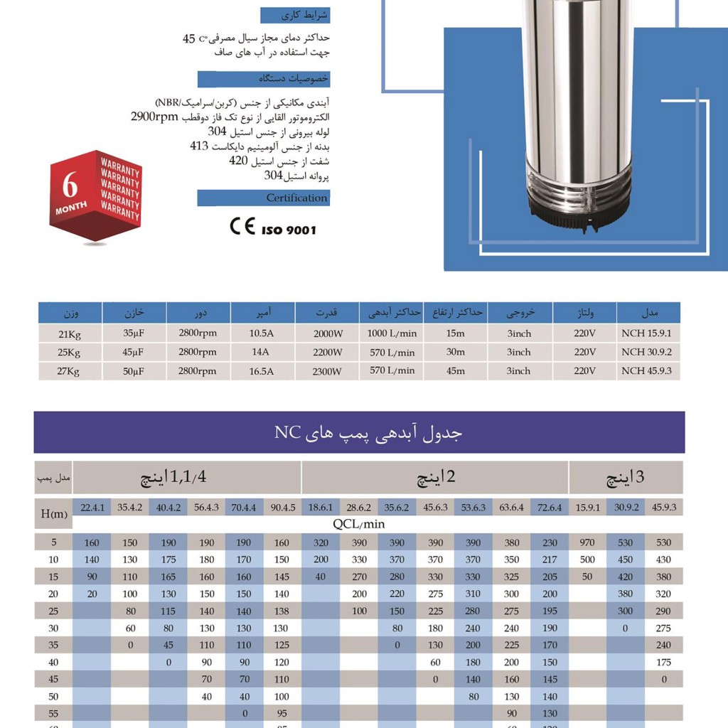 مدل | کف کش 30 متری ایران پمپ 3 اینچ مدل NCH 30.9.2 |
