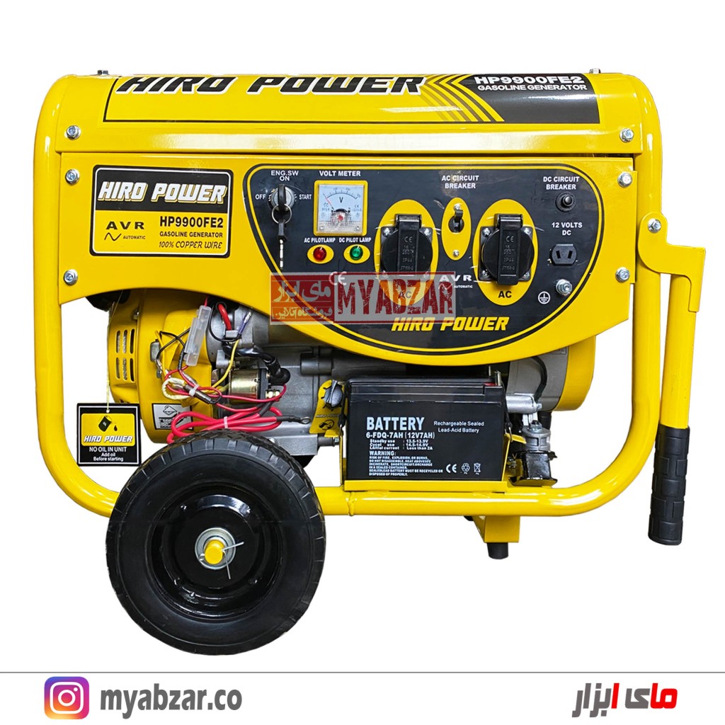 موتور برق بنزینی هیروپاور استارتی مدل HP9900FE2 با چرخ ودسته ا HIROPower HP9900FE2