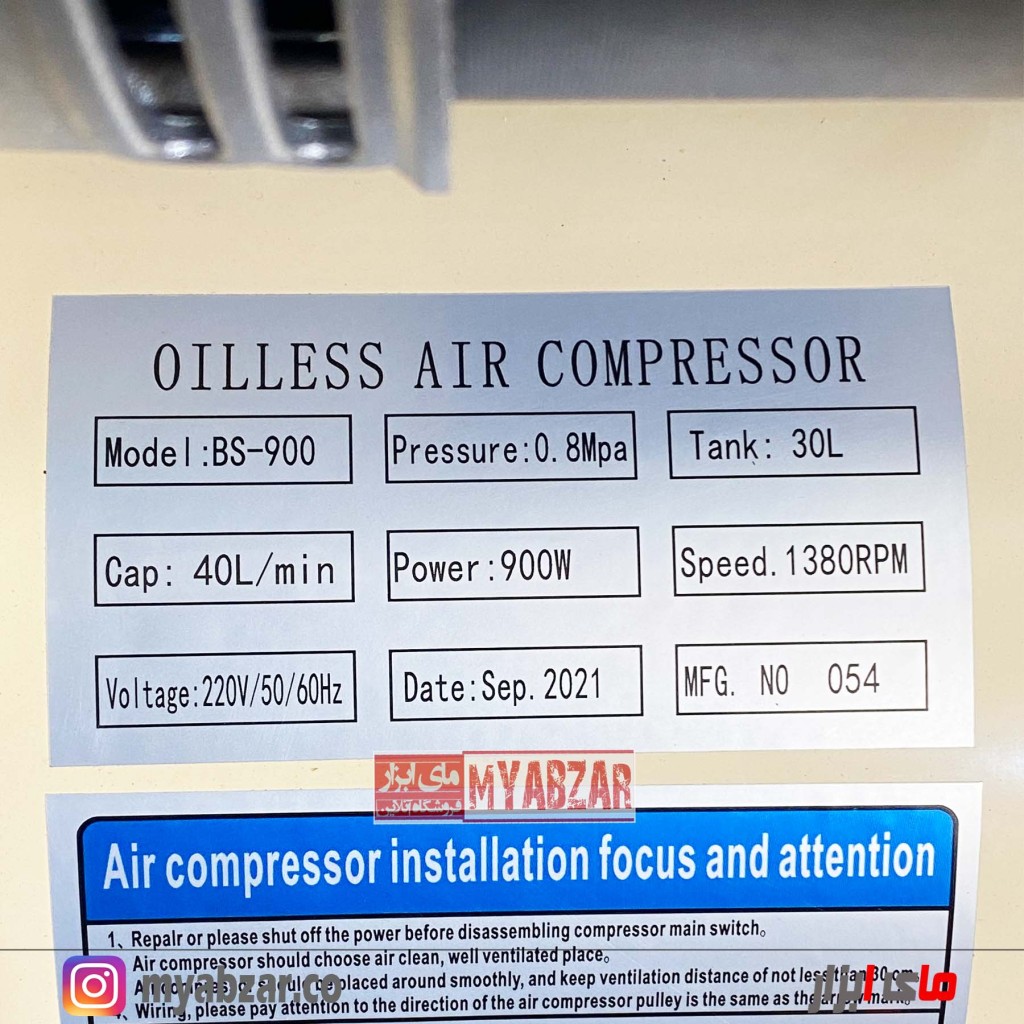مشخصات کلی کمپرسور باد باس 30 لیتری سایلنت مدل BS-900