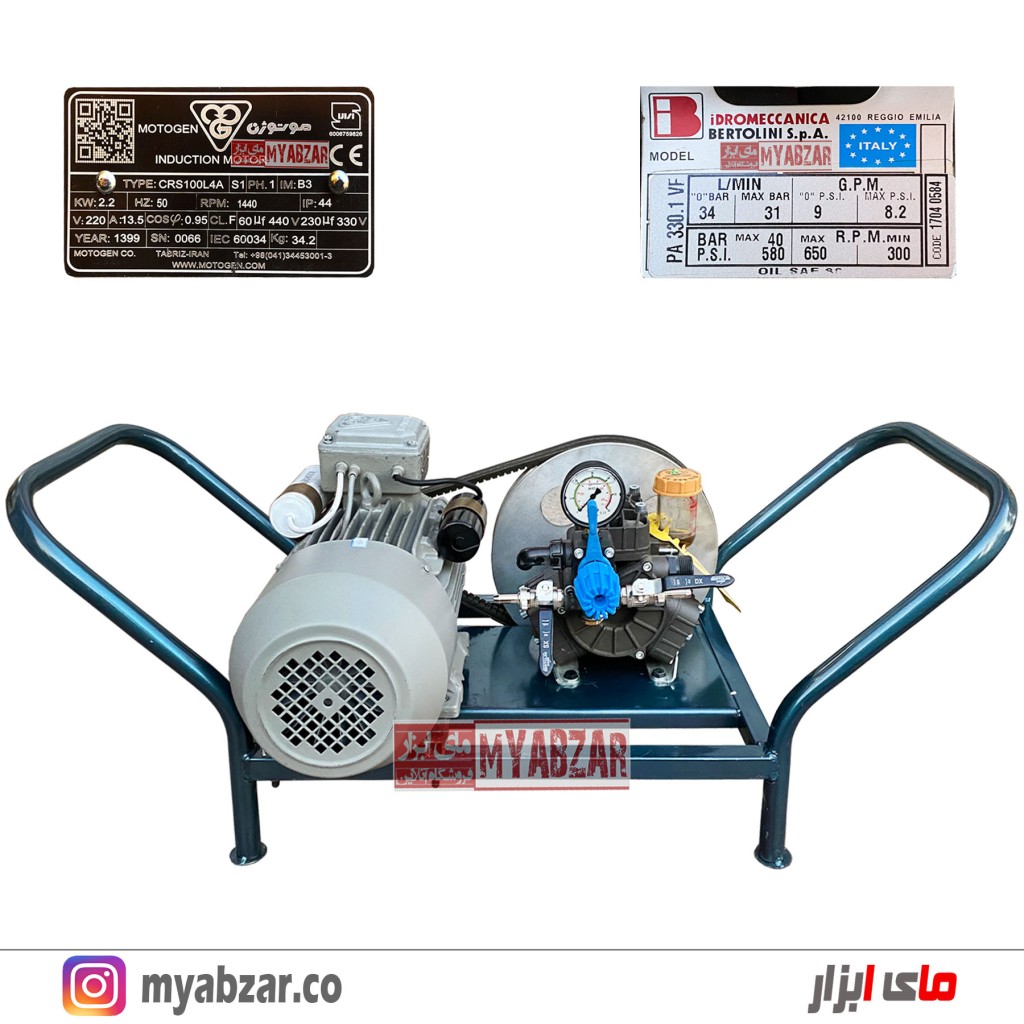 مشخصات سمپاش برقی 3 اسب موتوژن | پمپ 40 بار برتولینی مدل PA 330