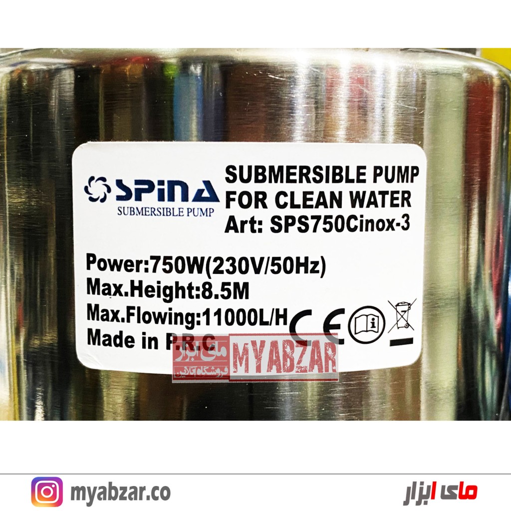مشخصات فنی پمپ کفکش بدنه استیل اسپینا 8.5 متری مدل SPINA SPS750