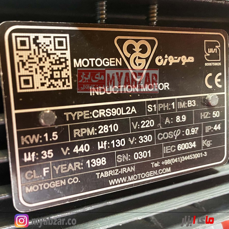 الکتروموتور تک فاز موتوژن 3000 دور 1.5 motojen kw