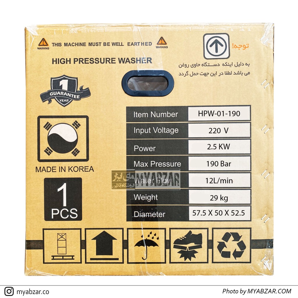 مشخصات فیزیکی کارواش 190 بار تانوس کره مدل HPW-01-190: