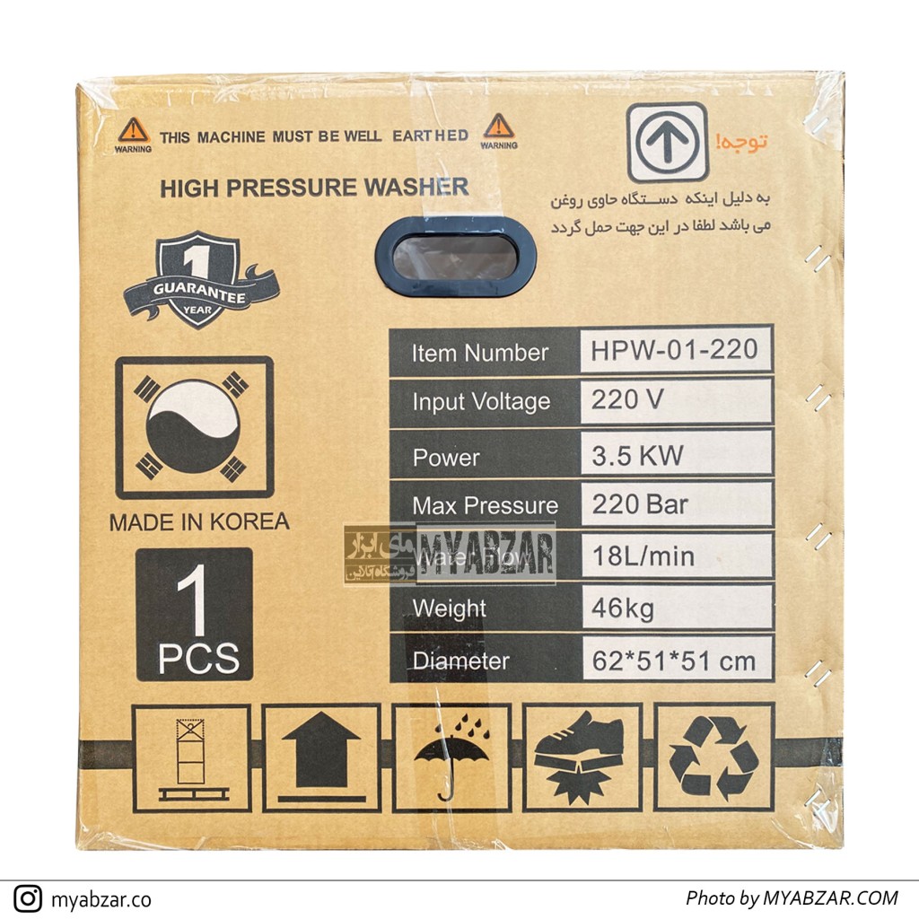 مشخصات فیزیکی کارواش 220 بار تانوس کره مدل HPW-01-220: