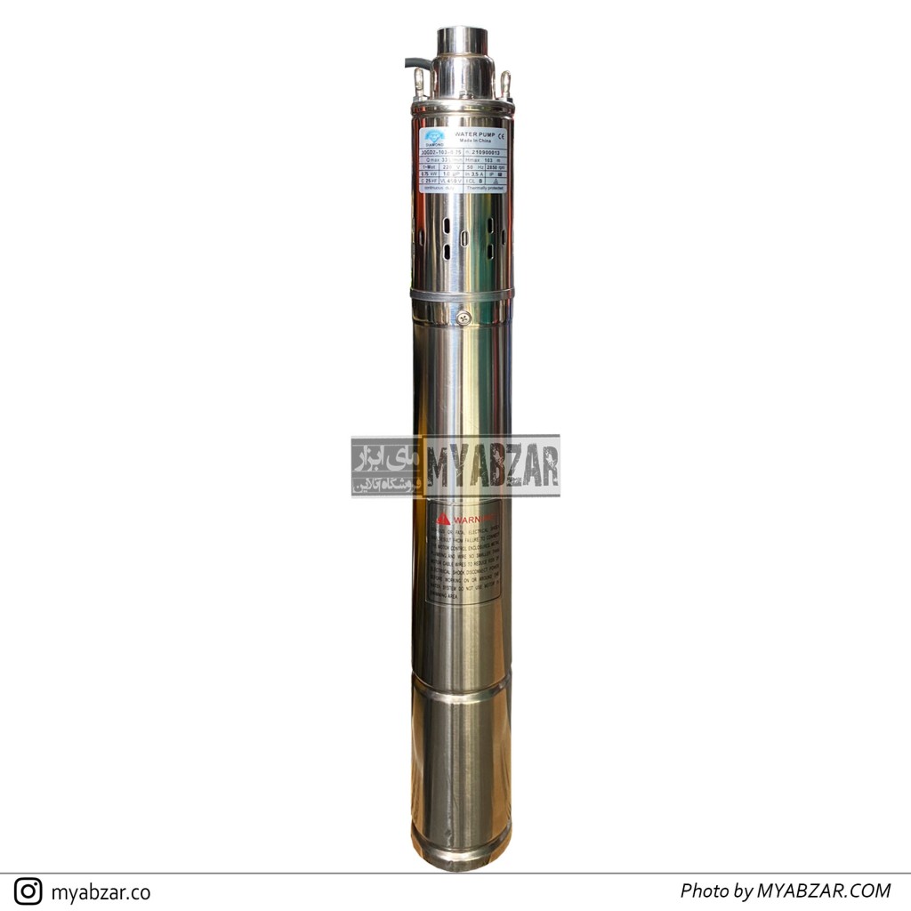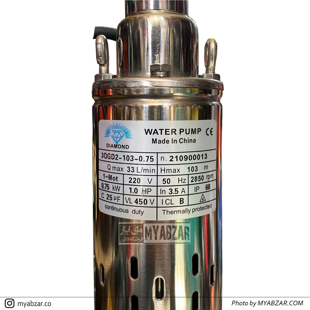 پمپ شناور تنه باریک(لوله 90) دیاموند 100 متری 1 اینچ تکفاز DIAMOND مناسب چاه های اب صاف و متراژ 20 الی 80 متر میباشد.