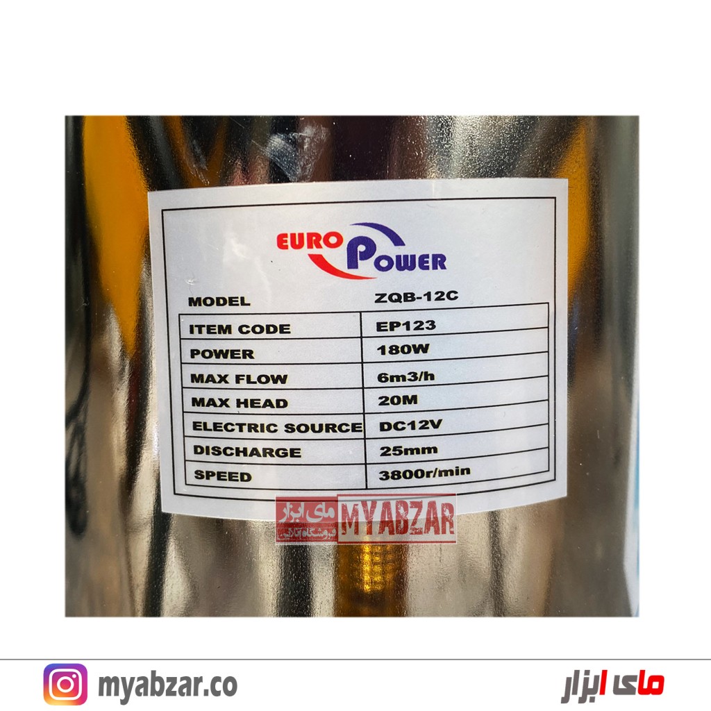 پمپ کفکش 12 ولت 20 متری 1 اینچ یورو پاور مدل ZQB-12-