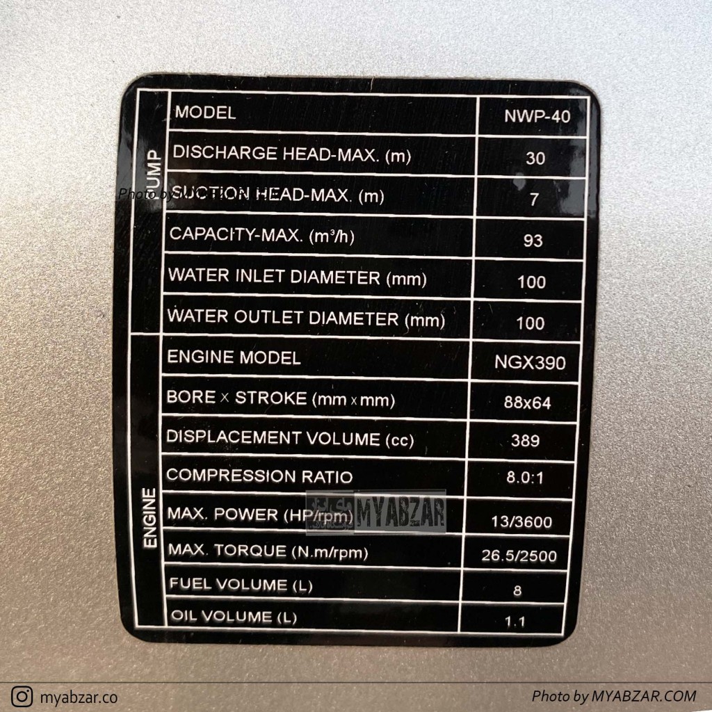 .این موتورپمپ به موتور قدرتمند 13 اسب مدل GX390 مجهز شده که میتواند آب را تا ارتفاع 30 متر یا 500 متر روی سطح زمین انتقال دهد.حداکثر خروجی آب در این موتور پمپ به 1500 لیتر در دقیقه میرسد.