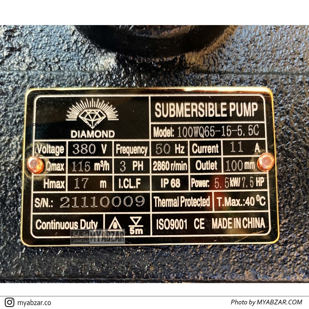 ویژگی های پمپ لجن کش 17 متری 3 فاز 4 اینچ دیاموند مدل 100WQ65-15-5.5C