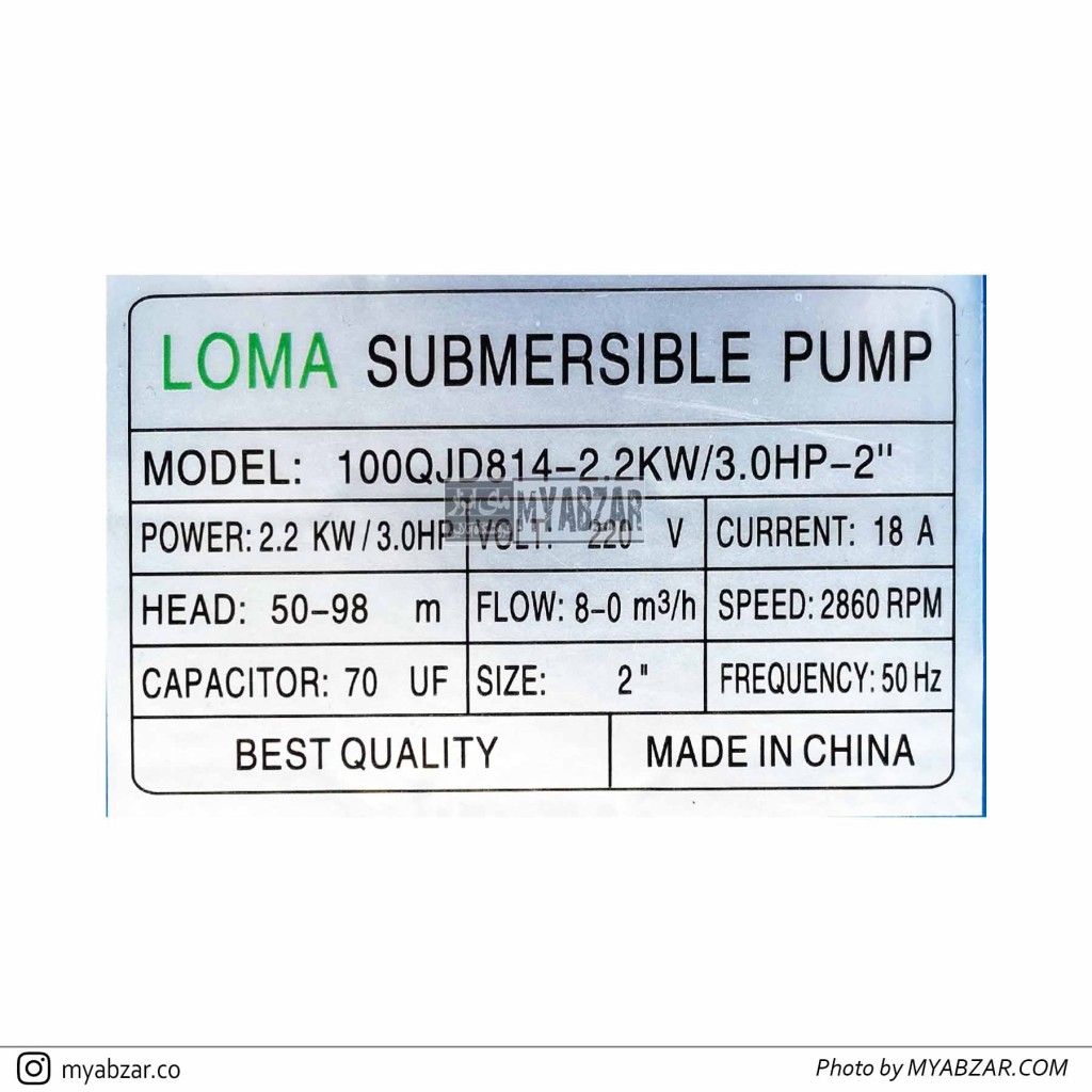 پمپ شناور لوما 98 متری 2 اینچ مدل 100QJD814 مناسب چاه های اب صاف و متراژ 40 الی 90 متر میباشد.