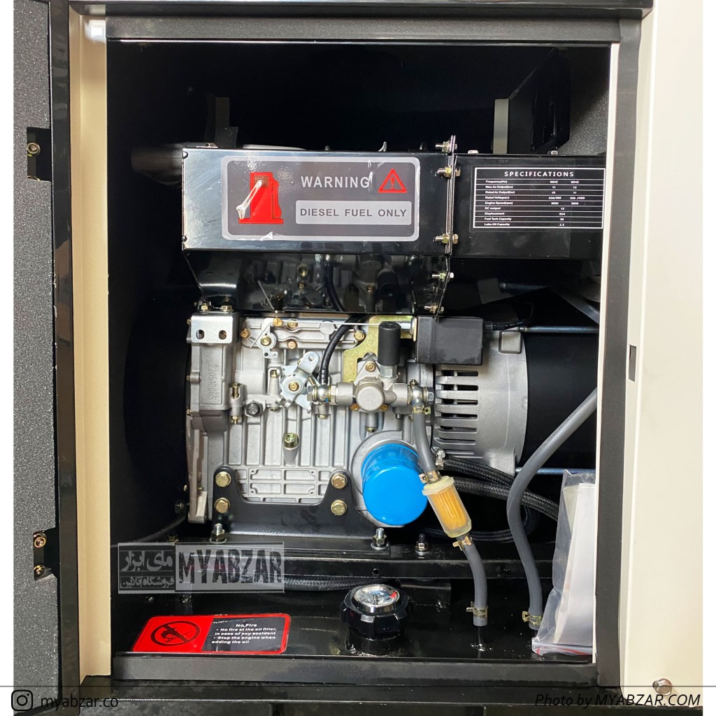 موتوربرق 12 کیلووات سوپرسایلنت دیزلی - قدرت این دستگاه از موتور 22 اسب گرفته شده و همچنین در قسمت ژنراتور از بهترین برند موجود در بازار با سیم پیچی تمام مس که توان تولید 15 kva را دارد استفاده شده که توانایی تولید 50 آمپر را دارد.
