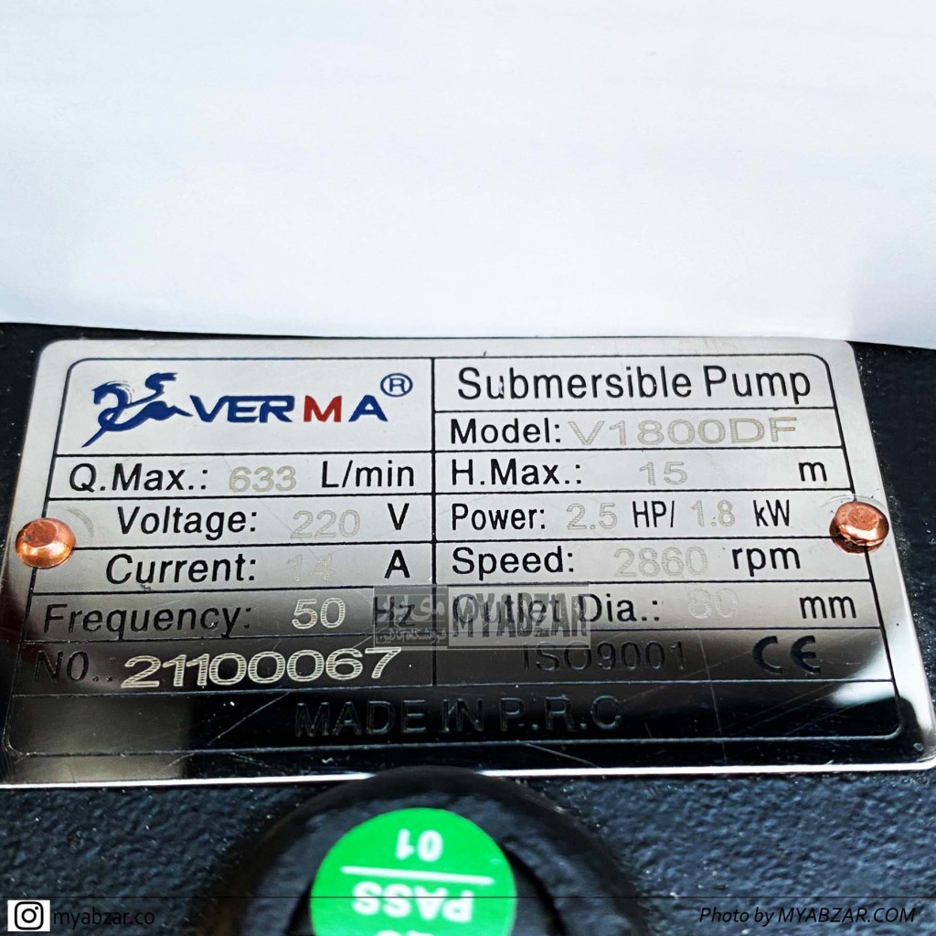 مدل | پمپ لجن کش خردکن دار 15 متری 3 اینچ ورما مدل VERMA V1800DF |