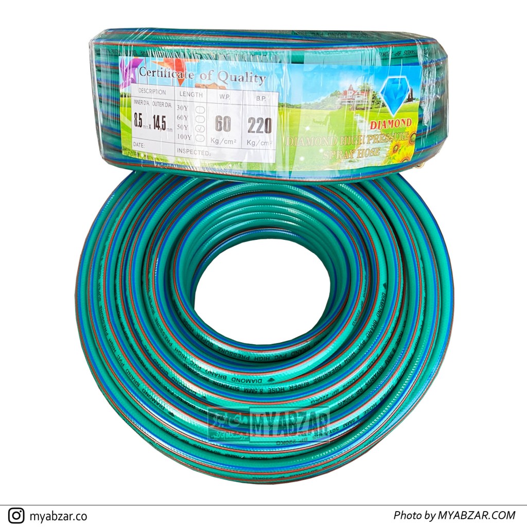 شیلنگ سمپاش 5 لایه diamond 50 یاردی سایز 8.5 و ضخامت 5 لایه با تحمل فشار 220 بار ساخت چین با کیفیت بسیار بالا