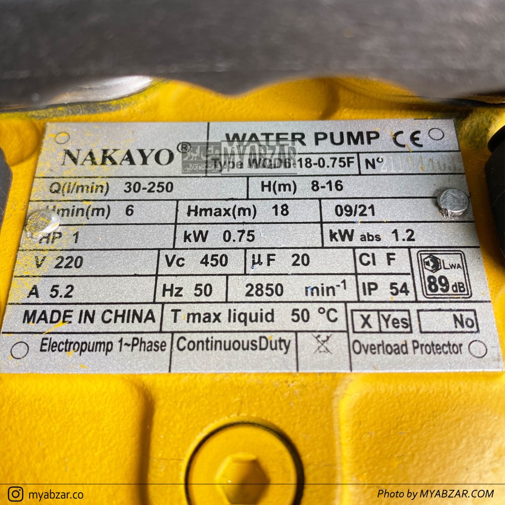 مناسب چاه های متراژ 2 الی 16 متر میباشد.لجن کش NAKAYO با بدنه چدن و پروانه از جنس چدن و قدرت موتور 1 اسب توانایی خروج اب تا 250 لیتر در دقیقه را دارد.ساخت چین.
