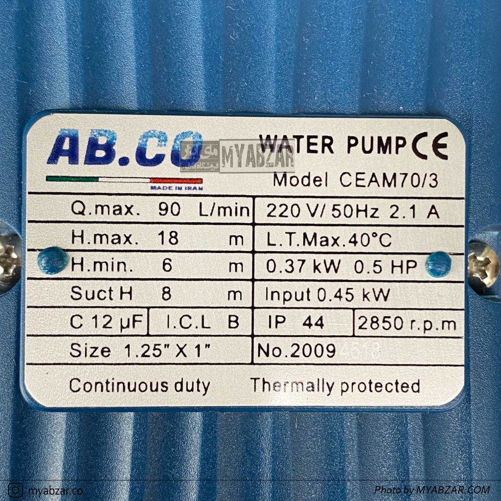 کد کالا | پمپ کله استیل آبکو مدل AB.CO CEAM70/3 |