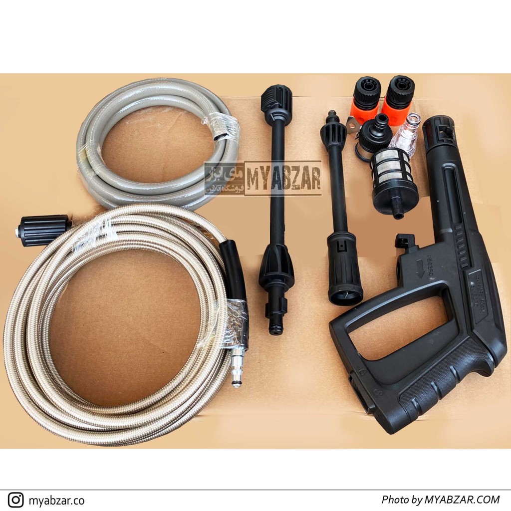 وزن دستگاه بدون اکسسوری هایش حدود 10.9 کیلوگرم است و ابعاد آن 25× 14× 33 سانتیمتر می باشد. بنابراین حمل آن آسان است و براحتی می توان از آن استفاده کرد بدون آنکه دچار خستگی زیاد شویم. همچنین طول شلنگ فشار قوی همراه دستگاه 5 متر میباشد که شعاع عملیاتی مناسبی را برای دستگاه فراهم می نماید.