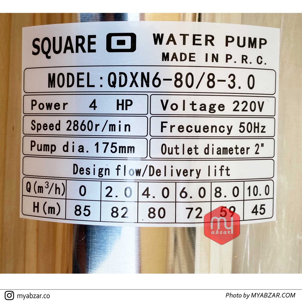 پمپ کفکش 80 متری 2 اینچ اسکواردی مدل SQUARE D QDXN6-80/8-3.0
