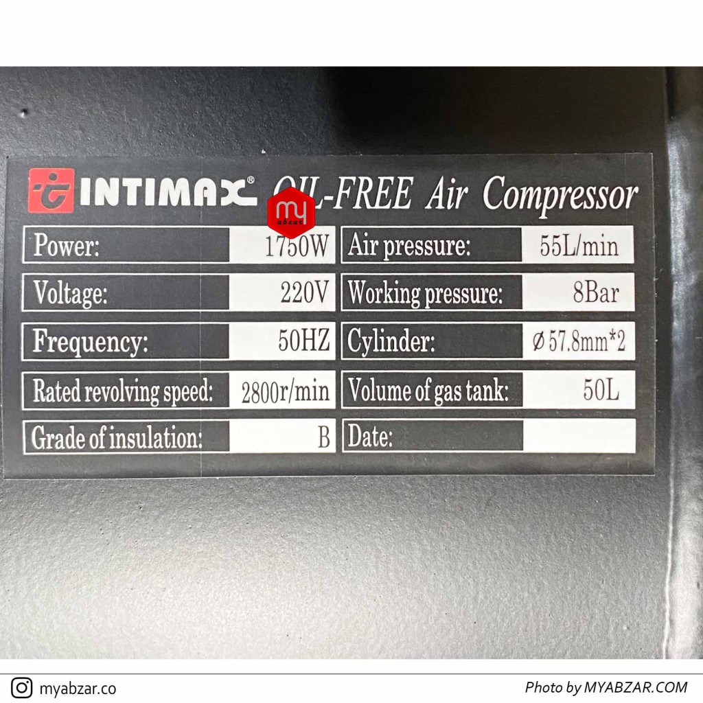 مشخصات کلی کمپرسور باد 50 لیتری سایلنت اینتیمکس مدل INTIMAX 50L