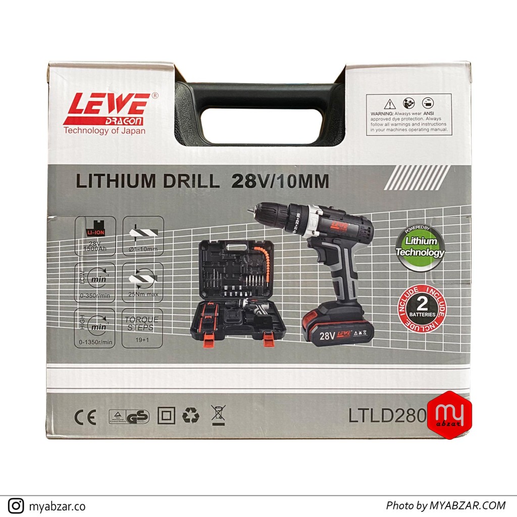 دریل پیچگوشتی شارژی «لیوی » (LEWE)مدل «LTLD 28001»با یک باتری لیتیومی کار میکند. این باتری با ولتاژ 28 ولت انرژی مورد نیاز موتور دستگاه را تامین کرده است. موتور این دستگاه به یک گیربکس سه وضعیتی مجهز است و در هر وضعیت بازه سرعت گردش موتور تغییر میکند.