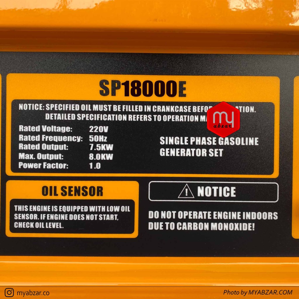 مشخصات فنی موتور برق 8000 وات اسپینا مدل SP18000E