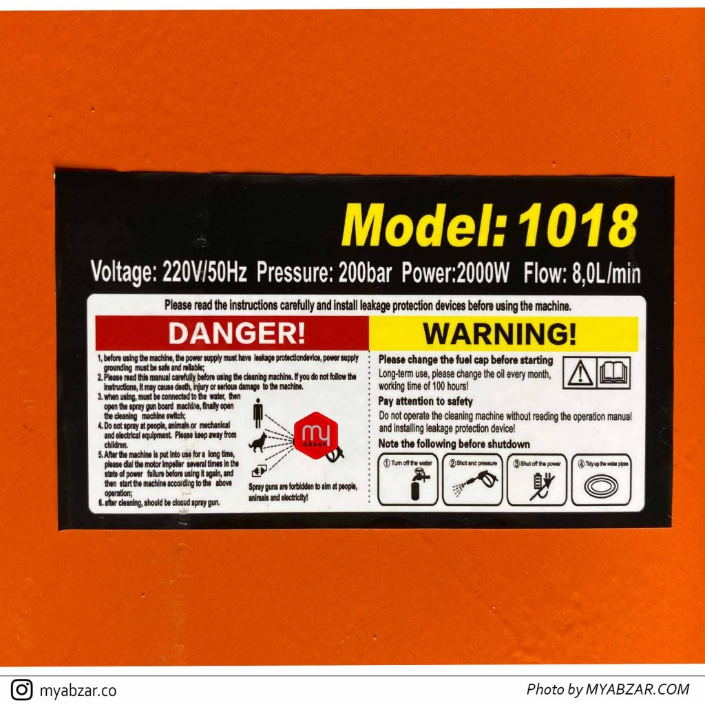 مدل کارواش صنعتی | کارواش صنعتی 200 بار اسپینا مدل SPINA 1018 |