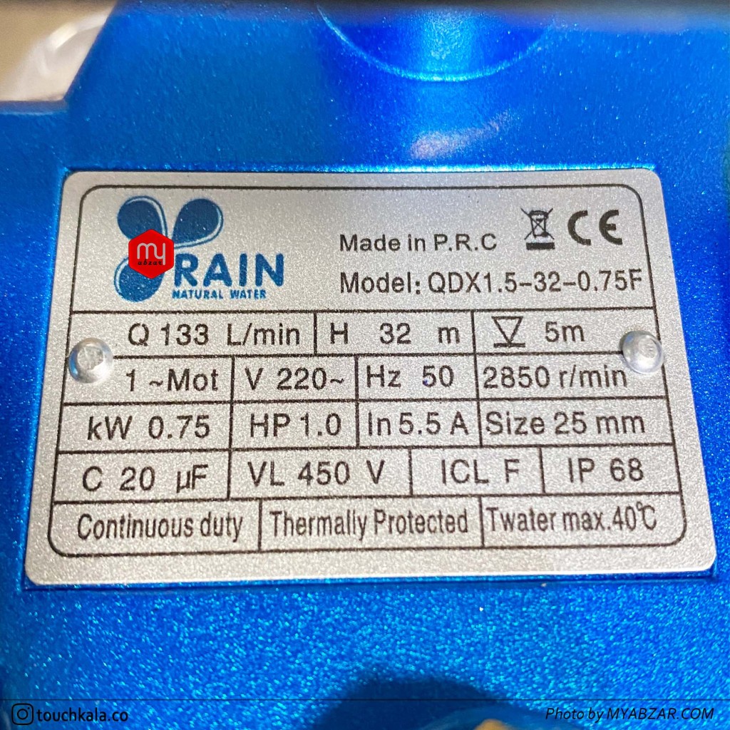 کفکش راین 32 متری مدل RAIN QDX1.5-32-0.75F مناسب چاه های اب صاف و متراژ 10 الی 30 متر میباشد.