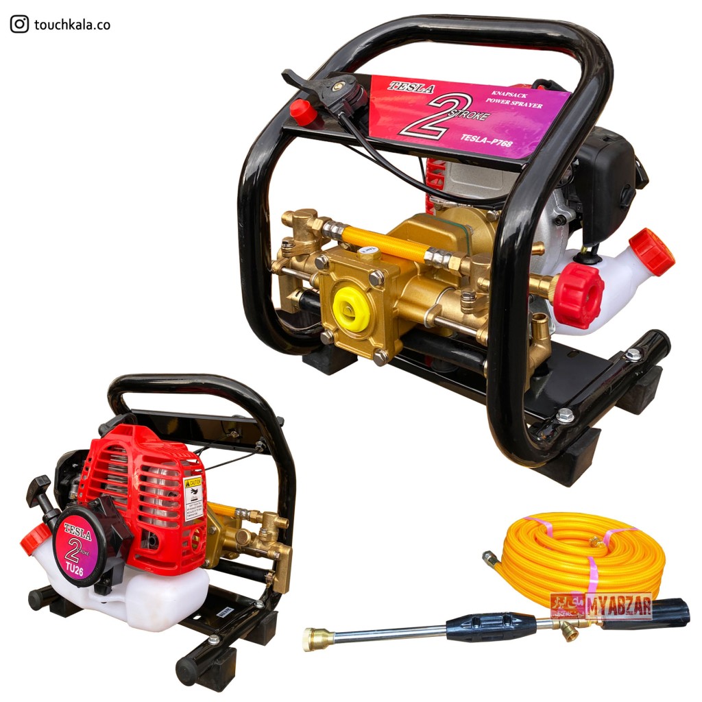 سمپاش 2 زمانه تسلا مدل TESLA-P768 دستگاهی با وزن مناسب جهت سمپاشی باغ ها و گلخانه ها و سمپاشی سبزیجات میباشد. این دستگاه با موتور 1.5 اسب تسلا و پمپ 30 بار پیستونی بروی شاسی نصب شده است.به همراه لانس سمپاشی و شیلنگ رفت و برگشت.
