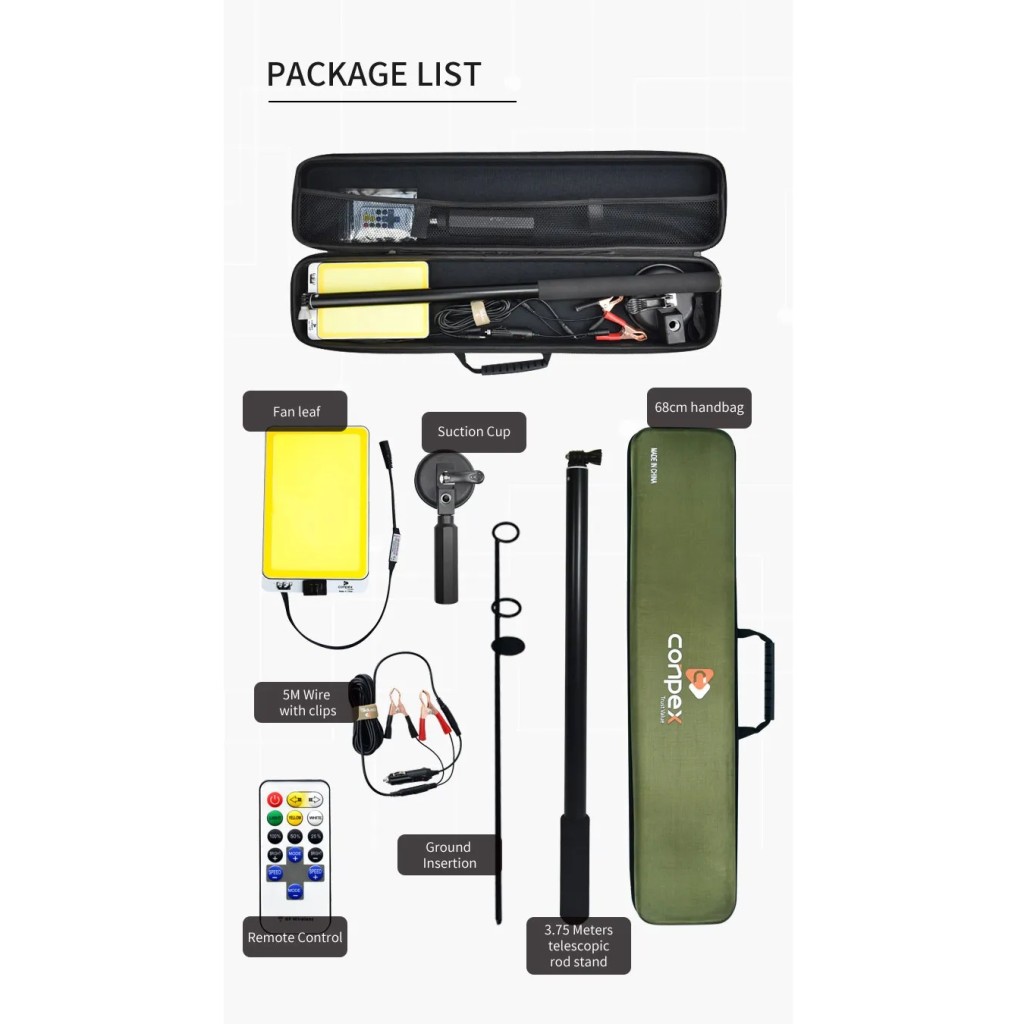 پایه این محصول یک میله جمع شونده 3.75 متری از جنس آلیاژ آلومینیوم است که قابلیت تنظیم ارتفاع نیز دارد. همچنین با داشتن کنترل از راه دور ، برای کم کردن و یا خاموش و روشن نمودن دستگاه نیازی به نزدیک شدن به اتصالات و یا دستگاه نداشته و به راحتی و از راه دور آن را انجام خواهید داد.