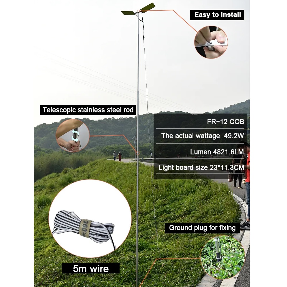 پایه این محصول یک میله جمع شونده 5 متری از جنس آلیاژ آهن و آلومینیوم است که قابلیت تنظیم ارتفاع نیز دارد. شرکت سازنده این محصول، مقاومت در برابر آب این چراغ را بر طبق استاندارد IP67 معرفی کرده است و محدوده عملکرد دمایی آن از 0 تا 40+ درجه سانتیگراد معرفی شده است.