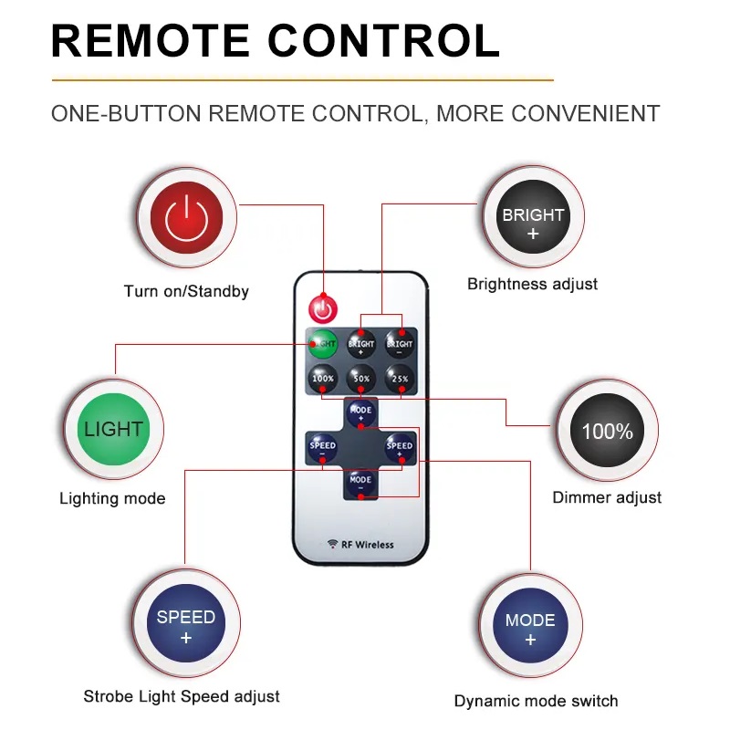 این فیش لایت دارای یک ریموت کنترل نیز میباشد که با استفاده از آن میتوانید شدت نور چراغ خود را تا فاصله 15 متری تنظیم کنید.