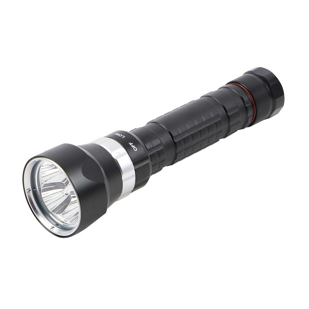 چراغ قوه غواصی Light 360 مدل TW-1033 اورجینال، چراغ حرفه ای و با کیفیتی را به شما معرفی می کنیم که با نام TW-1033 معروف است و دارای نوری با برد بسیار بالا است. این چراغ قوه دستی حدود 550 گرم وزن دارد و با دو باتری قابل شارژ لیتیومی که همراه آن قرار گرفته، کار می کند. برای شارژ این دو باتری باید آن ها را داخل شارژرقرار داده و شارژ کنید. در ضمن چراغ قوه اضطراری مذکور دارای 3 حالت نوردهی کم، زیاد و چشمک زن است. همچنین امکان تغییر کانون نور هم در این چراغ وجود دارد و رنگ نور مهتابی است.