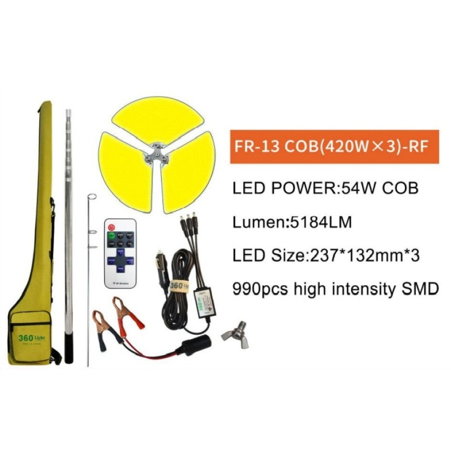 چراغ کمپینگ 3 پر 360 لایت مدل FR-13 COB RF (420W×3) یکی از کارآمدترین و پیشرفته ترین فیش لایت های موجود در بازار است. خرید چراغ کمپینگ 360 لایت تجربه خریدی کارآمد برای شما فراهم میسازد.