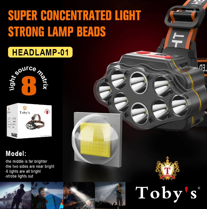 هدلامپ کوهنوردی 8 لامپه توبیز مدل headlamp-01