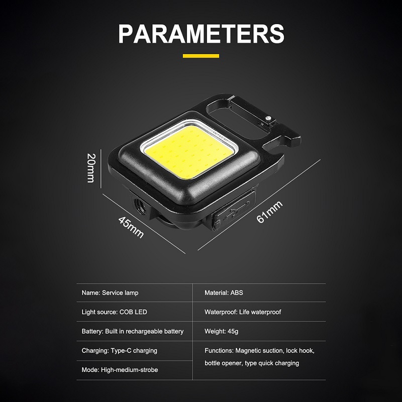 چراغ تاکتیکال کمپینگ مدل COB Rechargeable Keychain Light یک چراغ دستی با حداکثر میزان روشنایی 800 لومن با نور سفید است که میتواند به عنوان منبع نور در برنامه های طبیعتگردی، کمپینگ، آفرود و سفر چه در داخل چادر و چه در فضای باز، خانه و محل کار و غواصی مورد استفاده قرار بگیرد.
