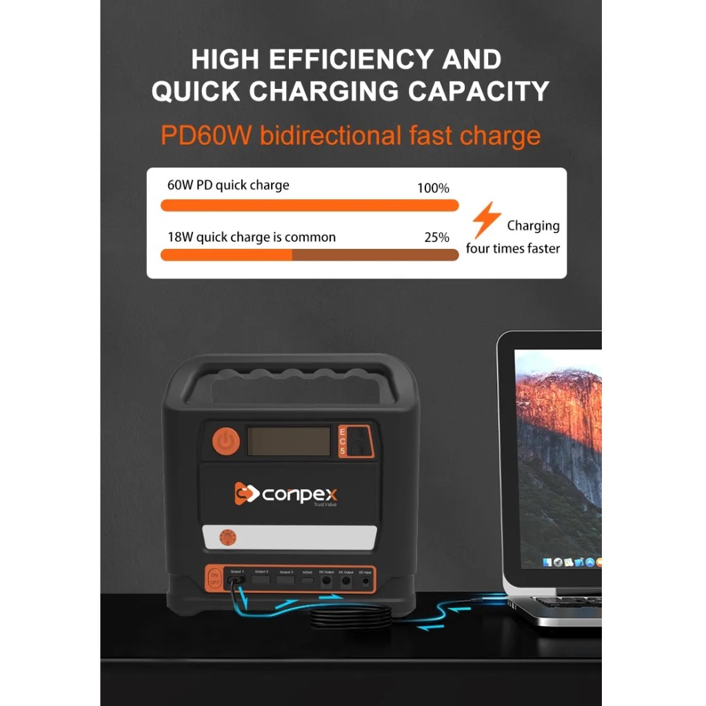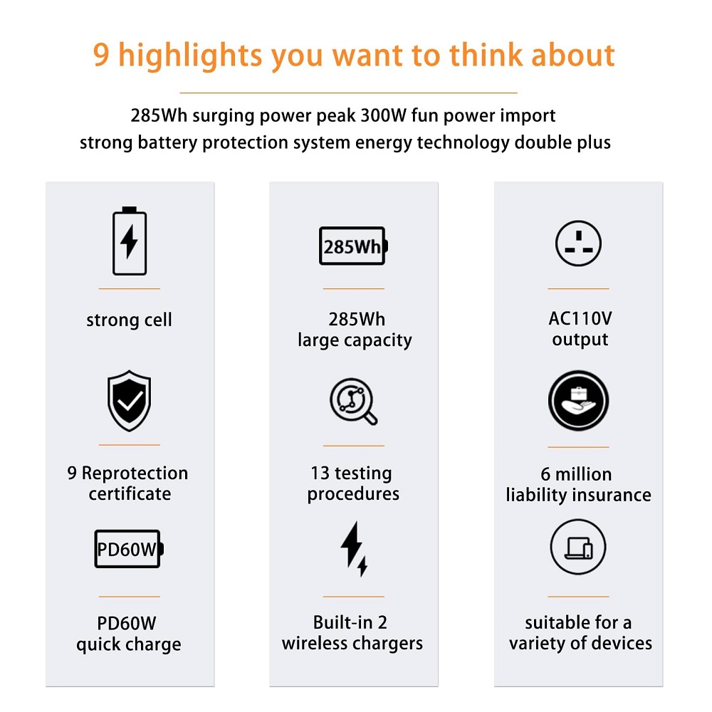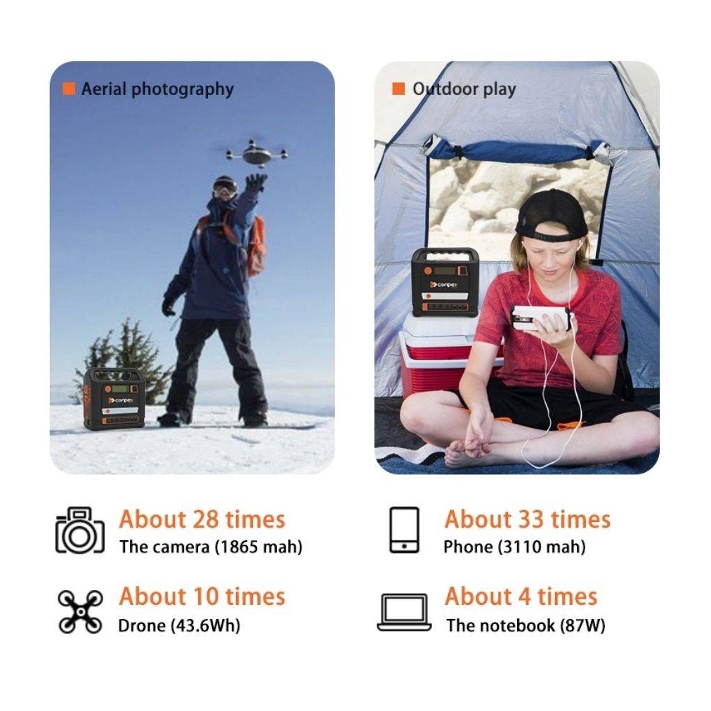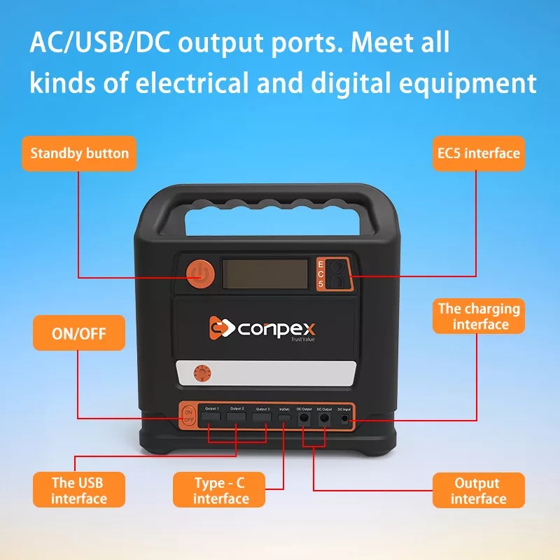 این محصول دارای پورتهایپ USB Type-C و EC5 برای شارژ انواع گوشی هوشمند، تبلت، دوربین عکاسی، لپ تاپ، یخچال سفری و سایر دستگاه های دیجیتالی است.