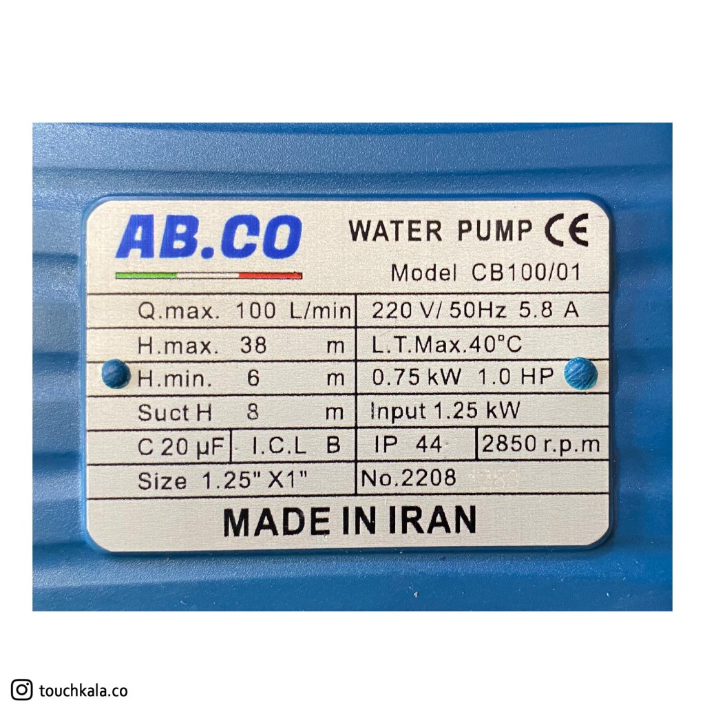 پمپ اب - الکتروپمپ 1 اسب 2 پروانه ابکو مدل ABCO CB100/01