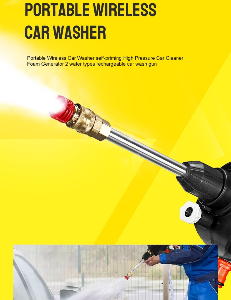 کارواش پرتابل شارژی کانپکس مناسب برای شستشو خودرو در مواقعی که به برق دسترسی ندارید ,کارواش شارژی کانپکس همراه با باتری 48 ولت , 2 نازل و مخزن کفپاش همراه با کیف حمل مخصوص ارائه میشود