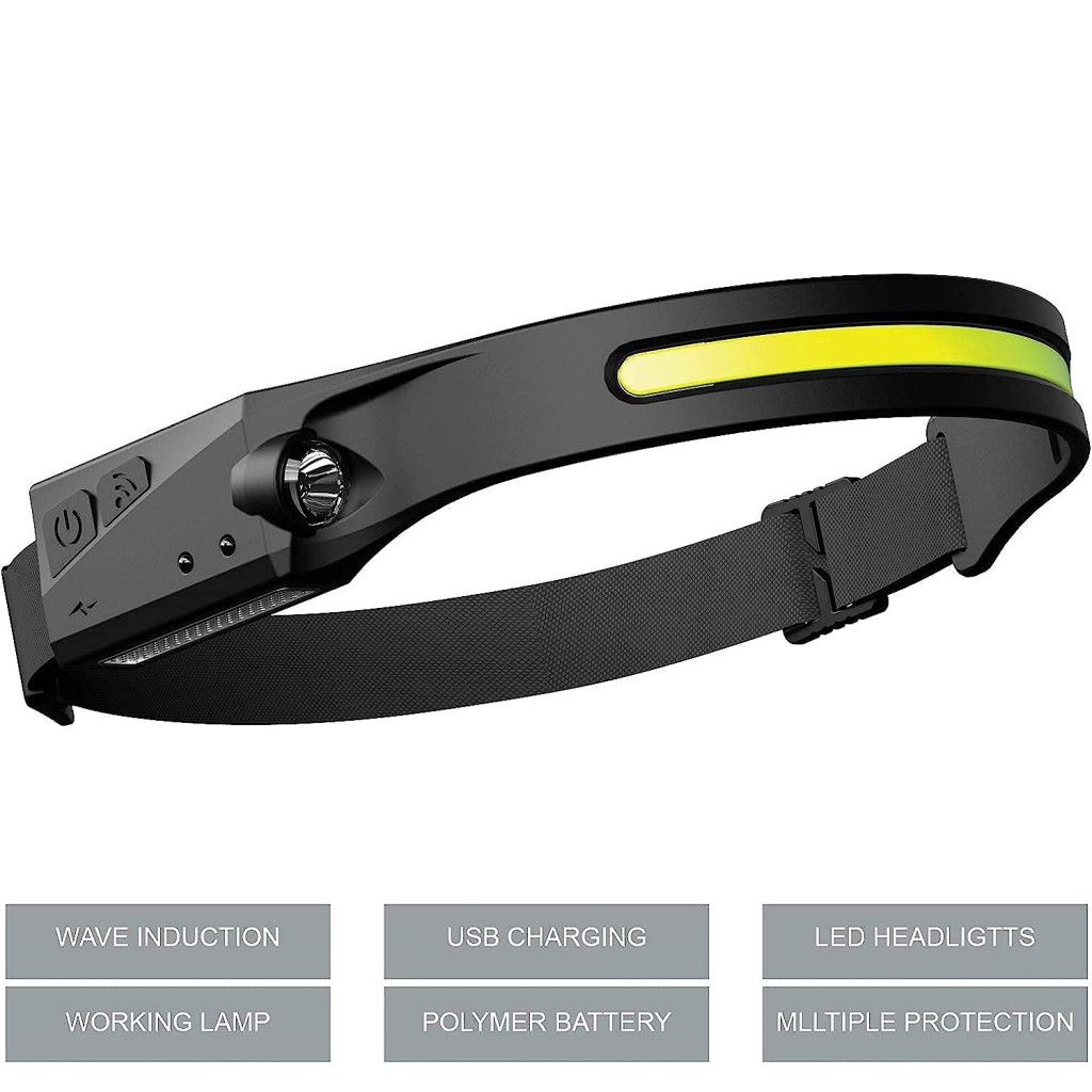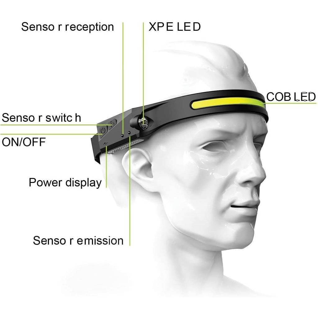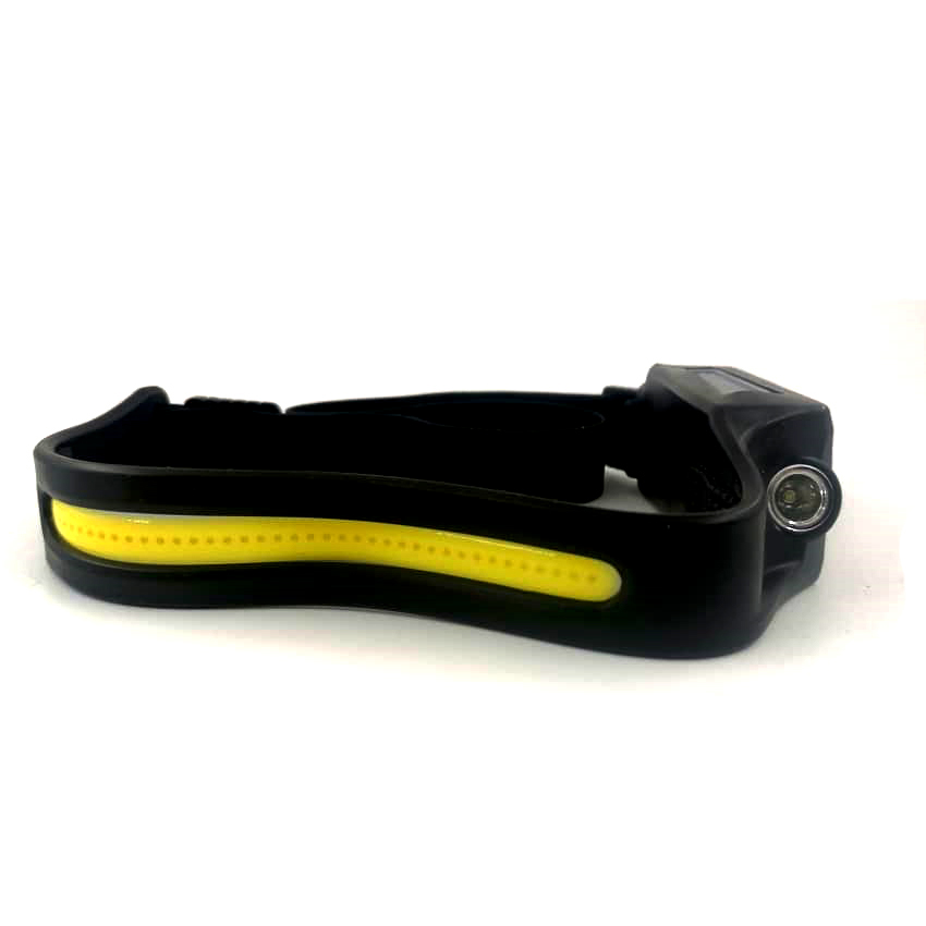 چراغ پیشانی ژله ای سنسور دار مدل COB-XPE دارای بند تنظیم شونده دوطرفه کشی ضد تعریق دارای 5 حالت نوردهی: روشنایی COB خطی قوی و ضعیف – روشنایی مستقیم XPE قوی و ضعیف – حالت چشمک زن (تمامی ال ای دی ها)