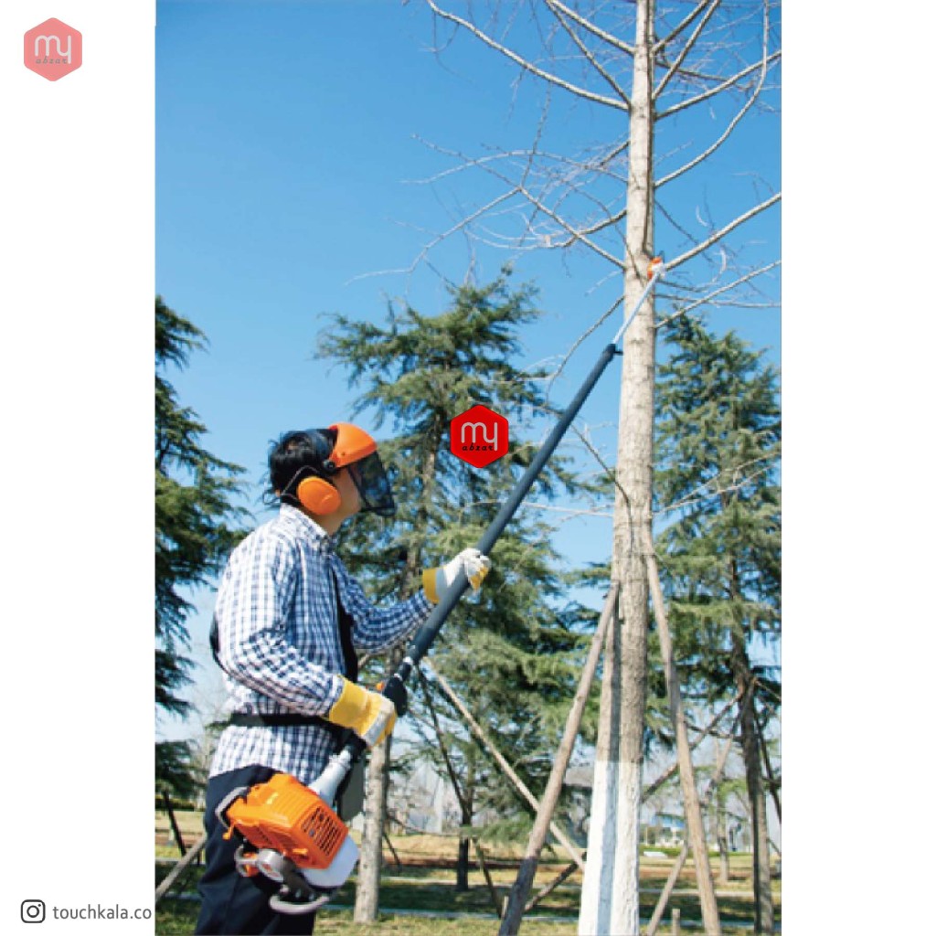 هرس و شاخه زنی یا سر شاخه زنی درختان در پارک ها و باغات همواره با محدودیت زمانی و نیاز زیاد به نیروی کار مواجه است. از خطرات این عملیات اجبار به کار در ارتفاع زیاد برای دسترسی به شاخه ها و سرشاخه هایی است که در قسمت های بالایی تاج درخت هستند و به خاطر ممانعتی که برای ورود نور خورشید به داخل تاج ایجاد میکنند باید هرس شوند. کار در ارتفاع بالا نیاز به تجهیزات و نفرات بیشتری دارد. زمان بر تر و سخت تر است و البته هر لحظه خطر سقوط از ارتفاع متخصصین هرسکار را تهدید میکند. در این شرایط در اختیار داشتن دستگاه اره شاخه بر دسته بلند QJB260 میتواند به کمک هرسکاران بیاید تا به تنهایی و بدون نیاز به تجهیزات و نفرات ذکر شده به تنهایی عملیات هرس شاخه هایی که دسترسی به آنها ناممکن بود را انجام دهد. دسته تلسکوپی تا طول حدودا 3 متر مجموعه برش را از مجموعه موتور دور میکند و سبب میشود در مجموع حداقل 4 متر دسترسی آسان برای سرشاخه زنی و هرس را در اختیار اپراتور قرار میدهد.موتور دستگاه اره شاخه بر دسته بلند QJB260 از نوع دو زمانه با حجم موتور 27.2 سی سی و توان 1 اسب بخار است. در موتور های دو زمانه باید از مخلوط روغن دو زمانه با کیفیت و بنزین به نسبت 1 به 25 به عنوان سوخت استفاده نمود. لازم است پیش از ریختن سوخت داخل تانک یا بک سوخت موتور، مخلوط سوخت را در پیمانه مناسب به نسبت ذکر شده تهیه نموده و به مدت دقیقه هم بزنید سپس داخل تانک سوخت بریزید.زنجیر دستگاه از برند معروف آمریکایی OREGON است طول مجموعه برش یعنی تیغه ساتوری و زنجیر 25 سانتی متر یا 10 اینچ است که دستگاه شاخه بر 260 را برای برش انواع شاخه های توانمند ساخته است. سیستم روغن کاری زنجیر اتوماتیک است و مجموعه زنجیر سفت کن برای تنظیم کشش زنجیر کاربری ساده و آسانی دارد.به یاد داشته باشید رعایت نکات ایمنی در زمان هرس شاخه هایی که در ارتفاع بالا هستند ضروری است. مراقب باشید ناظرین و افراد دیگری که در محیط هستند هرگر در مسیر افتادن شاخه بریده شده و در حال سقوط قرار نگیرند. حتما از لوازم ایمنی نظیر عینک محافظ چشم و صورت استفاده کنید چون در زمان نگاه کردن به ارتفاع و کار با دستگاه QJB260 باید بینایی کامل و دقیق داشته باشید و خرده چوب یا گرد و خاک وارد چشم شما نشود. در زمان برش شاخه ها و سرشاخه درختان در معابر مراقب کابل های برقی باشید خطر برق گرفتگی در این شرایط بسیار جدی است. در استقرار کامل و ایمن خود در محل کار اطمینان داشته باشید.